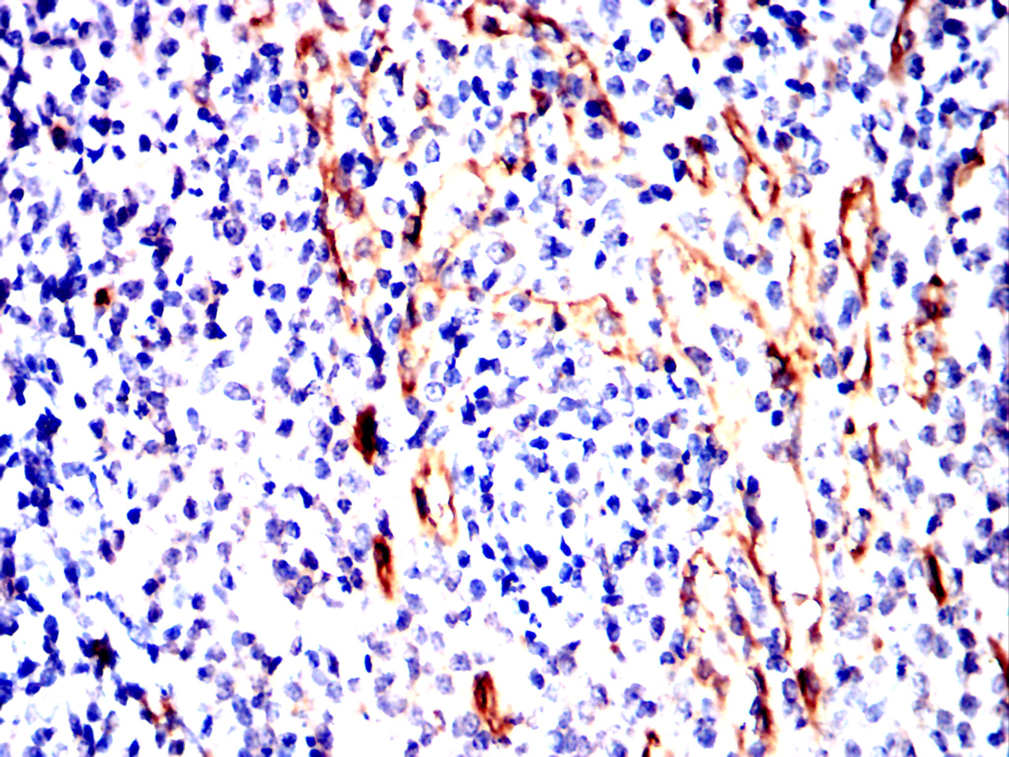 Immunohistochemical analysis of paraffin-embedded Rabbit spleen using NT5E mouse mAb with DAB staining.