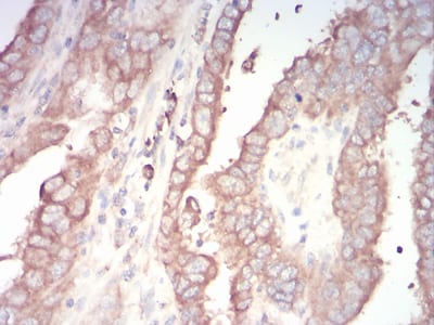 Immunohistochemical analysis of paraffin-embedded human TFAP2A tissues using endometrial cancer mouse mAb with DAB staining.