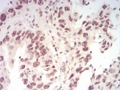 Immunohistochemical analysis of paraffin-embedded human cervical cancer tissues using WTAP mouse mAb with DAB staining.