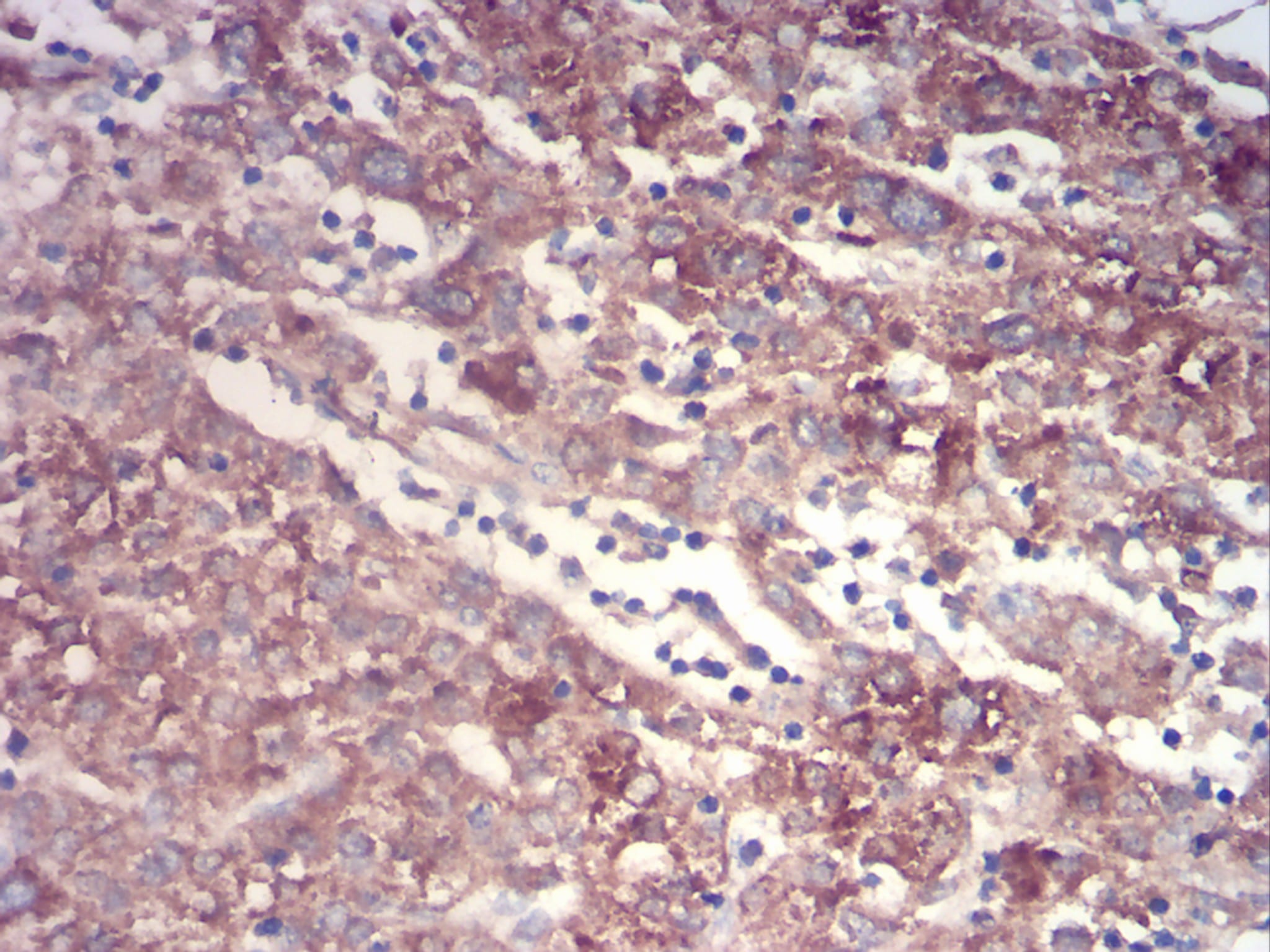 Immunohistochemical analysis of paraffin-embedded human liver cancer tissues using TTR mouse mAb with DAB staining.