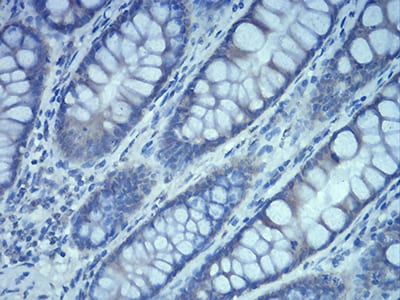 Immunohistochemical analysis of paraffin-embedded human colon cancer tissues using Rab5a mouse mAb with DAB staining.