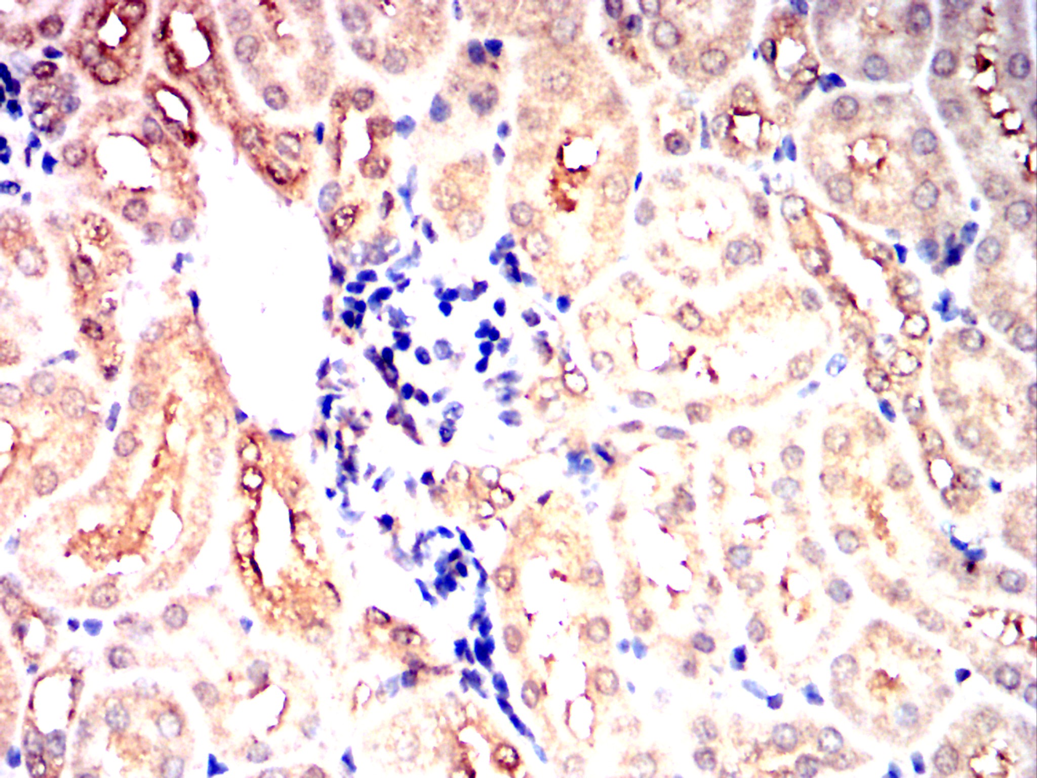 Immunohistochemical analysis of paraffin-embedded Rat kidney using PRKAA2 mouse mAb with DAB staining.
