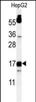 Western blot analysis of TYROBP Antibody (C-term) (Cat. #P30578) in HepG2 cell line lysates (35ug/lane). TYROBP (arrow) was detected using the purified Pab.
