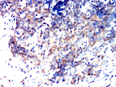 Immunohistochemical analysis of paraffin-embedded human cervical cancer tissues using BAX mouse mAb with DAB staining.