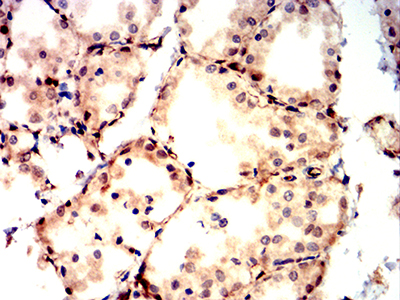 Immunohistochemical analysis of paraffin-embedded Rat thyroid using BAX mouse mAb with DAB staining.