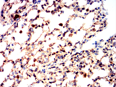 Immunohistochemical analysis of paraffin-embedded Mouse lung using BAX mouse mAb with DAB staining.