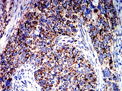 Immunohistochemical analysis of paraffin-embedded human lung cancer tissues using ATPIF1 mouse mAb with DAB staining.
