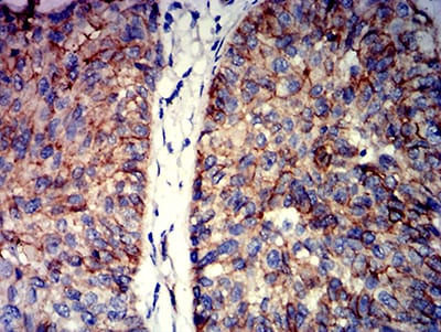 Immunohistochemical analysis of paraffin-embedded human cervical cancer tissues using CTNNB1 mouse mAb with DAB staining.