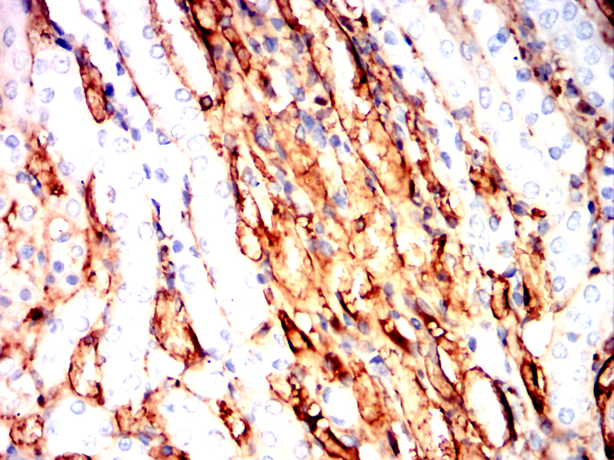 Immunohistochemical analysis of paraffin-embedded Rat kidney using CHRNA7 mouse mAb with DAB staining.