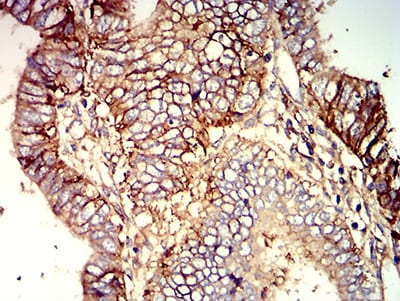 Immunohistochemical analysis of paraffin-embedded human endometrial cancer tissues using B7H3 mouse mAb with DAB staining.