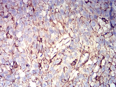 Immunohistochemical analysis of paraffin-embedded human bladder cancer tissues using CD44 mouse mAb with DAB staining.