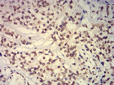 Immunohistochemical analysis of paraffin-embedded human rectum cancer tissues using EHMT2 mouse mAb with DAB staining.