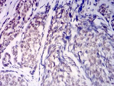 Immunohistochemical analysis of paraffin-embedded human cervical cancer tissues using KDM1A mouse mAb with DAB staining.