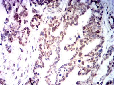 Immunohistochemical analysis of paraffin-embedded human Ovarian cancer tissues using MLH1 mouse mAb with DAB staining.