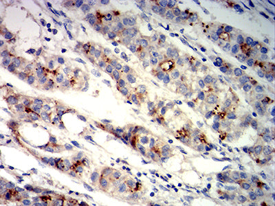 Immunohistochemical analysis of paraffin-embedded human liver cancer tissues using GPC3 mouse mAb with DAB staining.