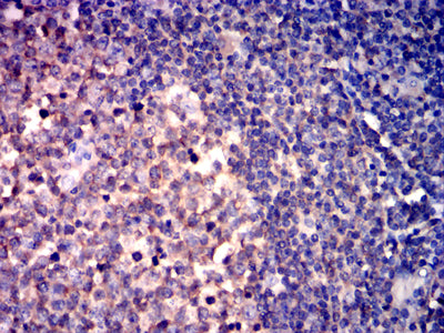 Immunohistochemical analysis of paraffin-embedded human lymphoid tissues using CD267 mouse mAb with DAB staining.
