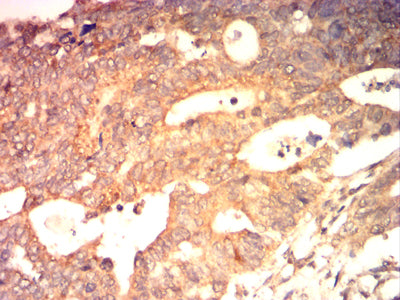 Immunohistochemical analysis of paraffin-embedded human cervical cancer tissues using BAX mouse mAb with DAB staining.