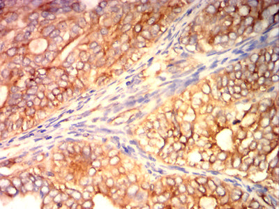 Immunohistochemical analysis of paraffin-embedded human cervical cancer tissues using TUBA4A mouse mAb with DAB staining.