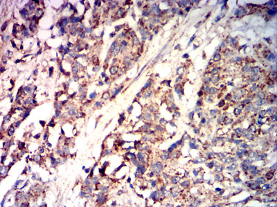 Immunohistochemical analysis of paraffin-embedded human stomach cancer tissues using CD85K mouse mAb with DAB staining.