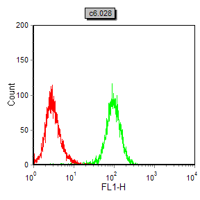 Flow cytometric analysis of C6 cells using Calreticulin mouse mAb (green) and negative control (red).