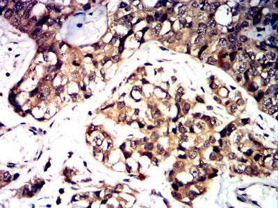 Immunohistochemical analysis of paraffin-embedded human bladder cancer tissues using MR1 mouse mAb with DAB staining.