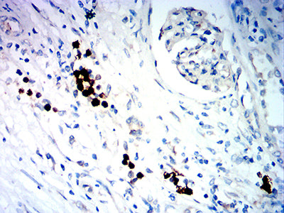 Immunohistochemical analysis of paraffin-embedded human kidney cancer tissues using CD281 mouse mAb with DAB staining.