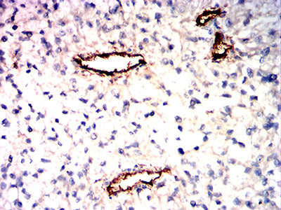 Immunohistochemical analysis of paraffin-embedded human cervical cancer tissues using CD105 mouse mAb with DAB staining.