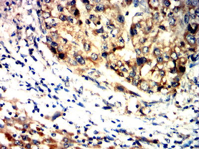 Immunohistochemical analysis of paraffin-embedded human liver cancer tissues using MR1 mouse mAb with DAB staining.
