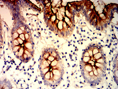 Immunohistochemical analysis of paraffin-embedded human colon tissues using CEACAM6 mouse mAb with DAB staining.