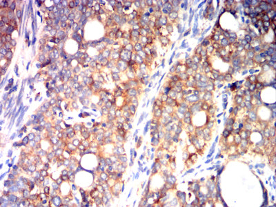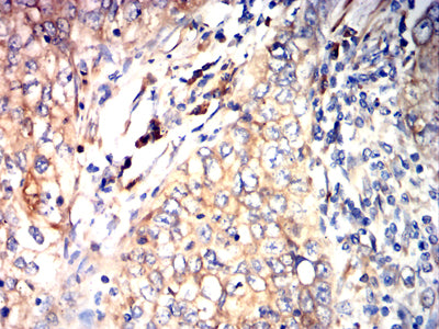 Immunohistochemical analysis of paraffin-embedded human lung cancer tissues using P4HB mouse mAb with DAB staining.