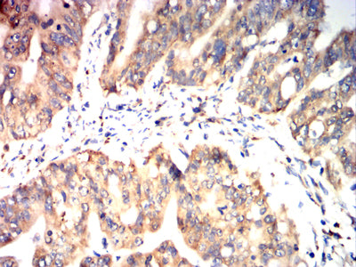 Immunohistochemical analysis of paraffin-embedded human rectal cancer tissues using P4HB mouse mAb with DAB staining.