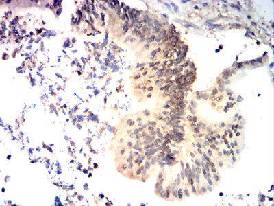 Immunohistochemical analysis of paraffin-embedded human cervical cancer tissues using KMT2A mouse mAb with DAB staining.