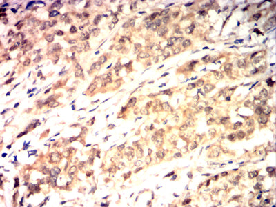 Immunohistochemical analysis of paraffin-embedded human bladder Cancer tissues using HSP70 mouse mAb with DAB staining.
