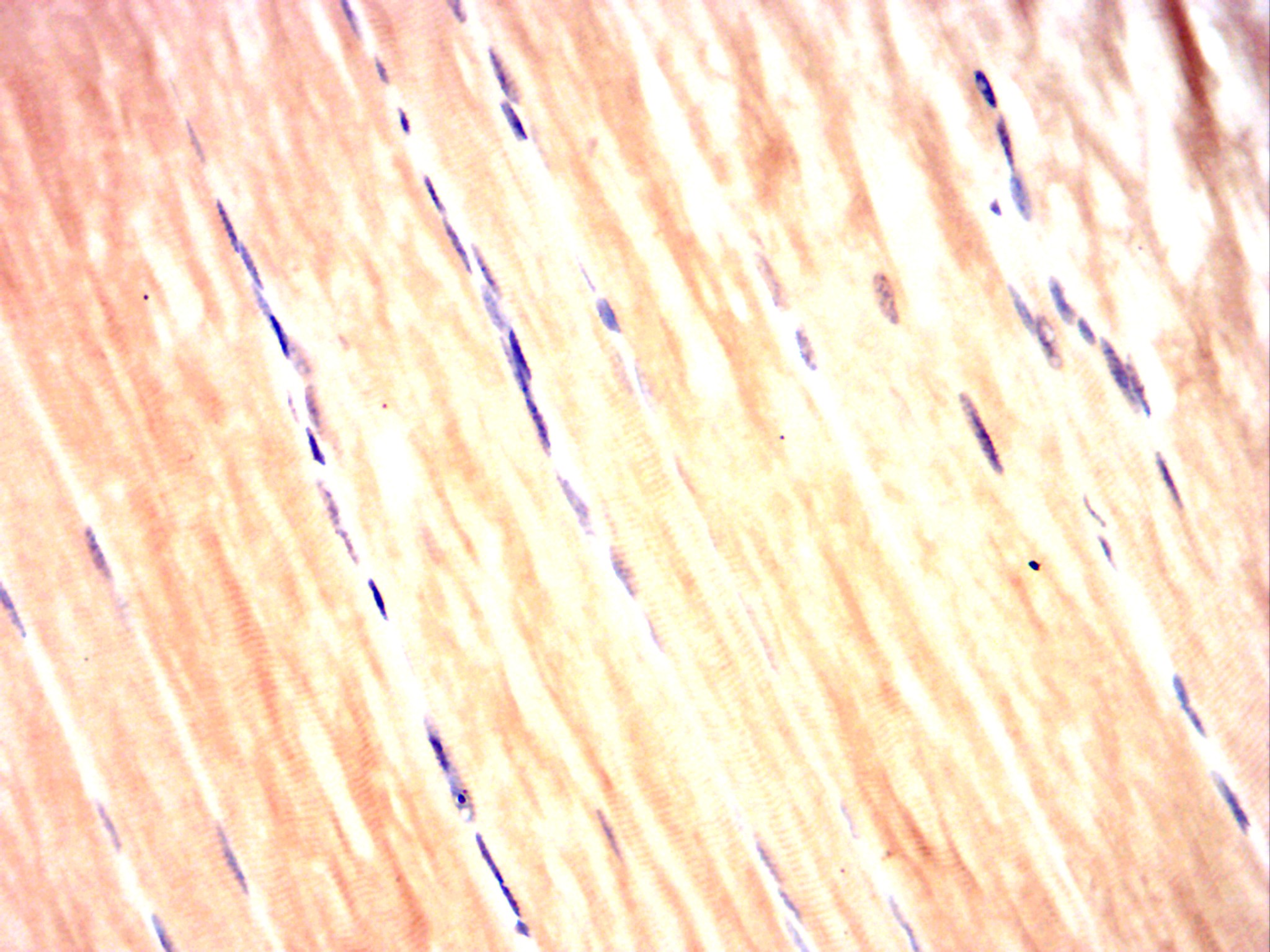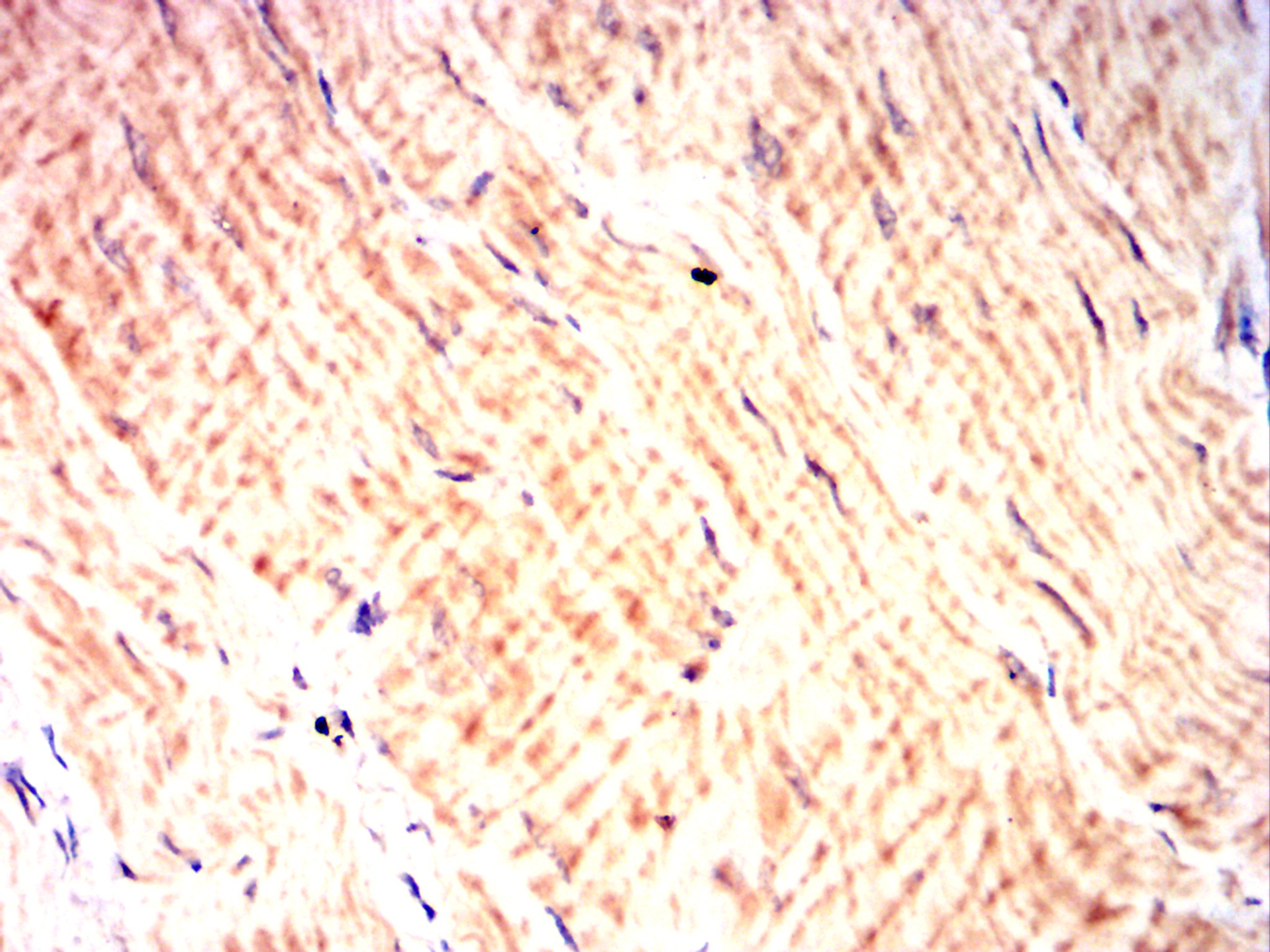 Immunohistochemical analysis of paraffin-embedded Rat muscle using DDR2 mouse mAb with DAB staining.