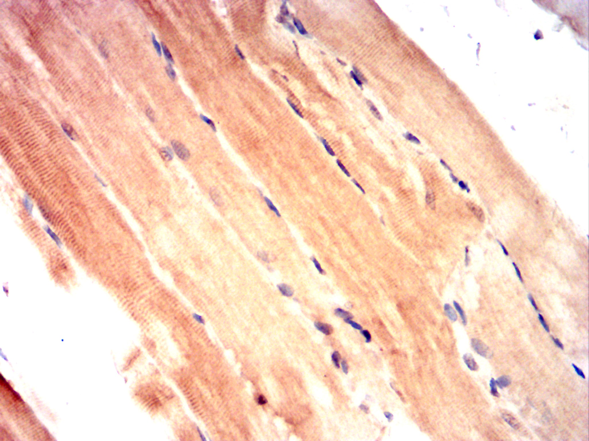 Immunohistochemical analysis of paraffin-embedded Rabbit muscle using DDR2 mouse mAb with DAB staining.
