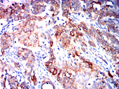 Immunohistochemical analysis of paraffin-embedded human lung cancer tissues using NDC80 mouse mAb with DAB staining.