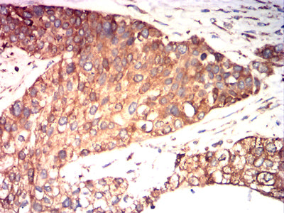 Immunohistochemical analysis of paraffin-embedded human ovarian cancer tissues using P4HB mouse mAb with DAB staining.