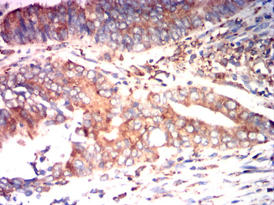 Immunohistochemical analysis of paraffin-embedded human rectal cancer tissues using P4HB mouse mAb with DAB staining.