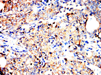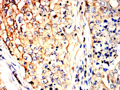 Immunohistochemical analysis of paraffin-embedded human cervical carcinoma tissues using P4HB mouse mAb with DAB staining.
