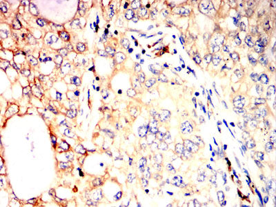 Immunohistochemical analysis of paraffin-embedded human cervical carcinoma tissues using P4HB mouse mAb with DAB staining.