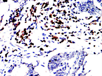 Immunohistochemical analysis of paraffin-embedded human lung cancer tissues using CD79A mouse mAb with DAB staining.