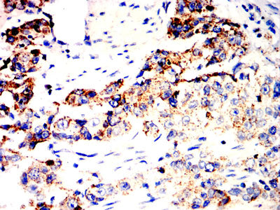 Immunohistochemical analysis of paraffin-embedded human esophageal cancer tissues using SOCS3 mouse mAb with DAB staining.