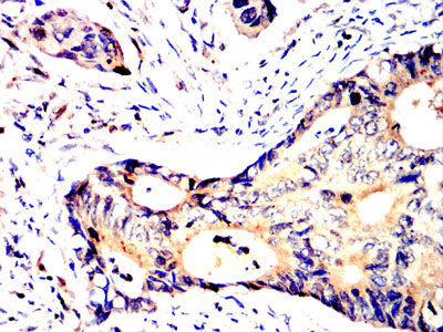 Immunohistochemical analysis of paraffin-embedded human rectal cancer tissues using SV2C mouse mAb with DAB staining.