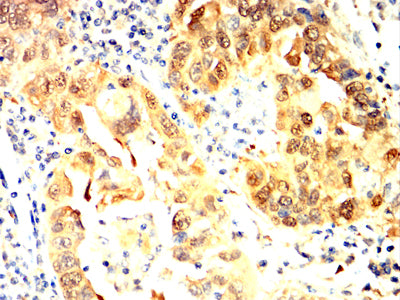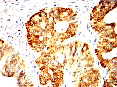 Immunohistochemical analysis of paraffin-embedded human endometrial cancer tissues using UCHL1 mouse mAb with DAB staining.