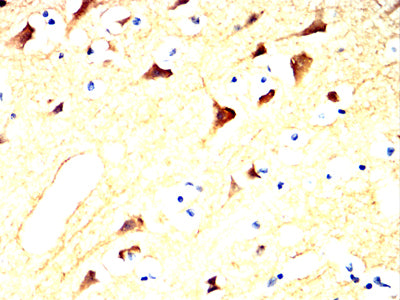 Immunohistochemical analysis of paraffin-embedded human brain tissues using UCHL1 mouse mAb with DAB staining.