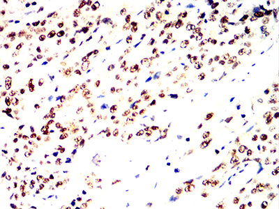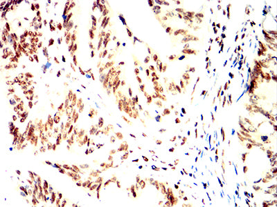 Immunohistochemical analysis of paraffin-embedded human rectum cancer tissues using RFA2 mouse mAb with DAB staining.