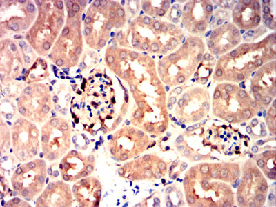 Immunohistochemical analysis of paraffin-embedded mouse kidney tissues using NPM3 mouse mAb with DAB staining.