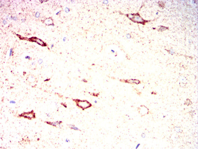 Immunohistochemical analysis of paraffin-embedded Rat cerebrum tissues using ZP2 mouse mAb with DAB staining.