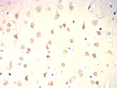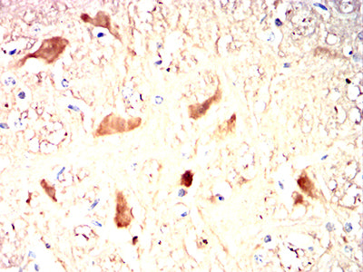 Immunohistochemical analysis of paraffin-embedded rat brain tissues using UCHL1 mouse mAb with DAB staining.