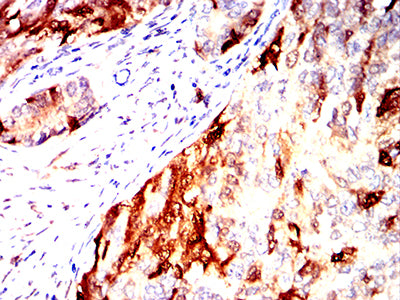 Immunohistochemical analysis of paraffin-embedded human cervical cancer tissues using UCHL1 mouse mAb with DAB staining.